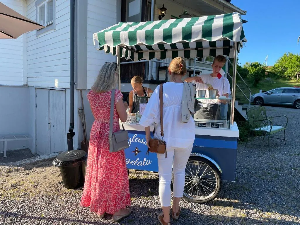 Pensionat Grisslehamn in Grisslehamn provides accommodations with a garden, a bar, and a shared lounge. A public bath is available for guests. There's a sun terrace and guests can access free Wifi and free private parking. Each room includes a private bathroom with a shower, while certain rooms are equipped with garden views. At the guest house, each unit includes bed linen and towels. Available each morning, the breakfast at the property includes gluten-free dishes along with a selection of juice and cheese. There is a coffee shop, and a mini-market is also available.